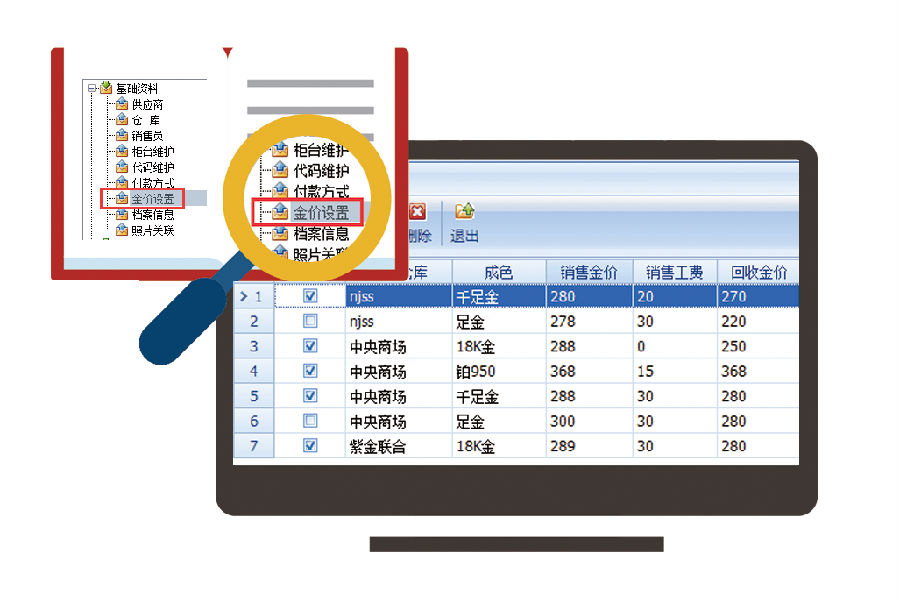 飾品調價(jià):隨著(zhù)企業(yè)的經(jīng)營(yíng)發(fā)展,銷(xiāo)售單價(jià)有時(shí)需要做出調整。本軟件系統不僅可以快速調整銷(xiāo)售價(jià)之外,還可以由軟件自動(dòng)記錄調價(jià)時(shí)間和調價(jià)次數,為今后的再一次調價(jià)提供依據,提高工作效率。