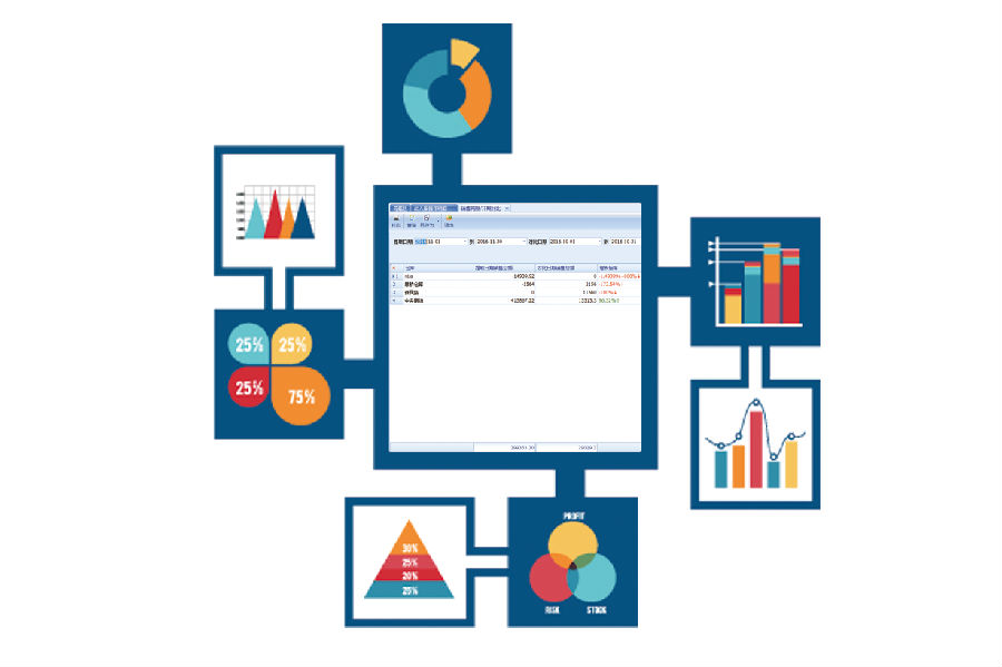 決策分析:從“庫存進(jìn)出分析”,“銷(xiāo)售分析”,“會(huì )員銷(xiāo)售”“營(yíng)業(yè)員業(yè)績(jì)”等方面進(jìn)行分析,通過(guò)分析可以清楚知道:商品的進(jìn)、調、存明細表、庫存貨齡、各類(lèi)商品銷(xiāo)售比重分析、銷(xiāo)售排行,門(mén)店排行、商品排行、銷(xiāo)售任務(wù)完成進(jìn)度等。